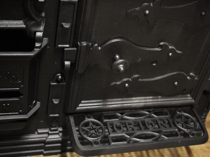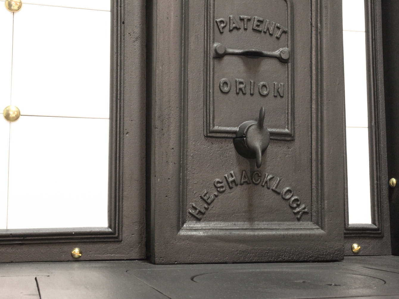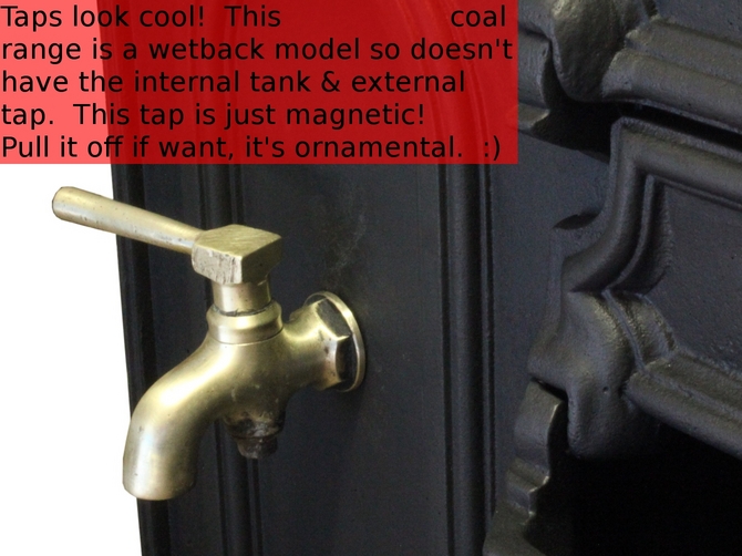 Fake tap! Well it's a real tap off a real Orion coal range but it's just "stuck" on with a high-power magnet. Have a look at the illustrations below and you will see that they display the non-wetback coal range as it has the brass tap on the front. Taps look cool!