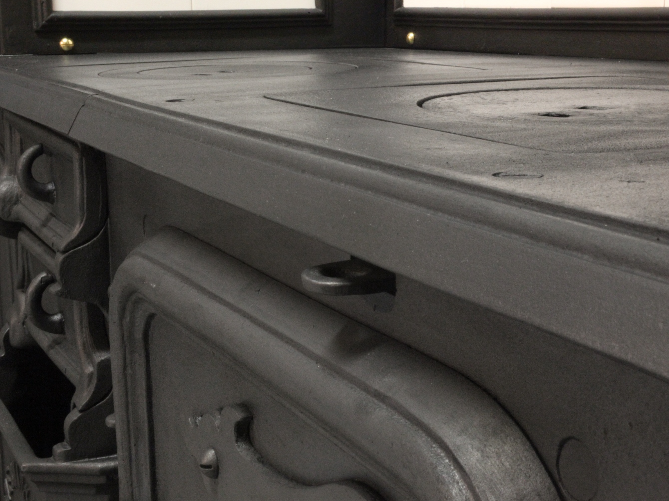 The front of this rack has its original brass covering but this rack is not the original part.